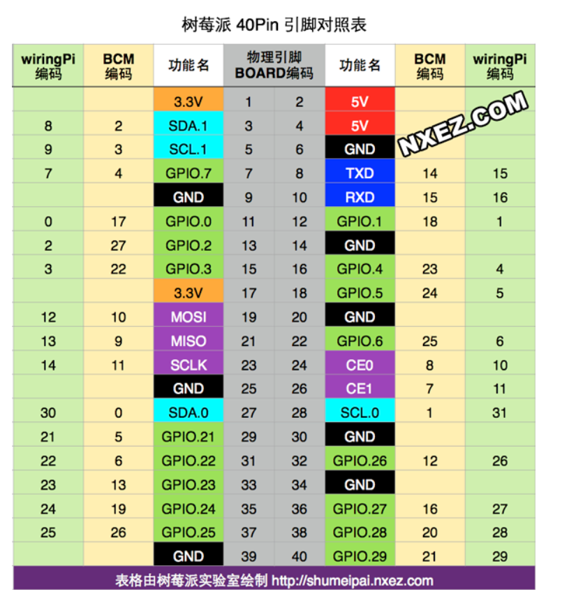 - 命令行输入 gpio readall 可以显示引脚状态及对应功能和编码。