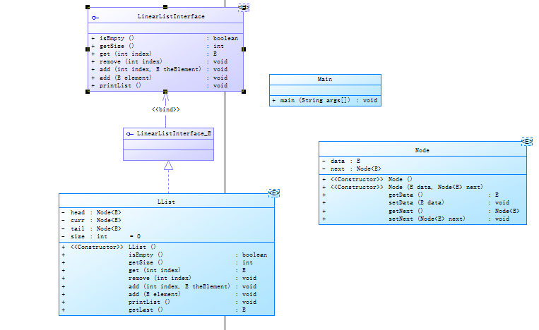package 单链表; public interface LinearListInterface<E> { public boolean isEmpty(); //链表是否为空 public int getSize(); //链表的长度 public E get(int index); //链表中index位置的数 public void remove(int index); //删除index位置的数 public void add(int index, E theElement); //将index位置的数改为theElement public void add(E element); //添加element public void printList(); //输出链表 }