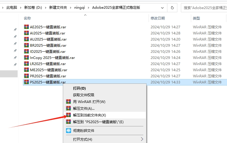 2、将“PS2025一键直装版.rar”安装包使用解压工具解压出来