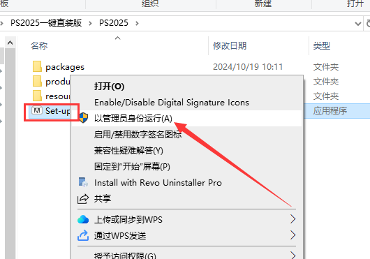 3、选择安装程序“Set-up.exe”鼠标右键以管理员身份运行