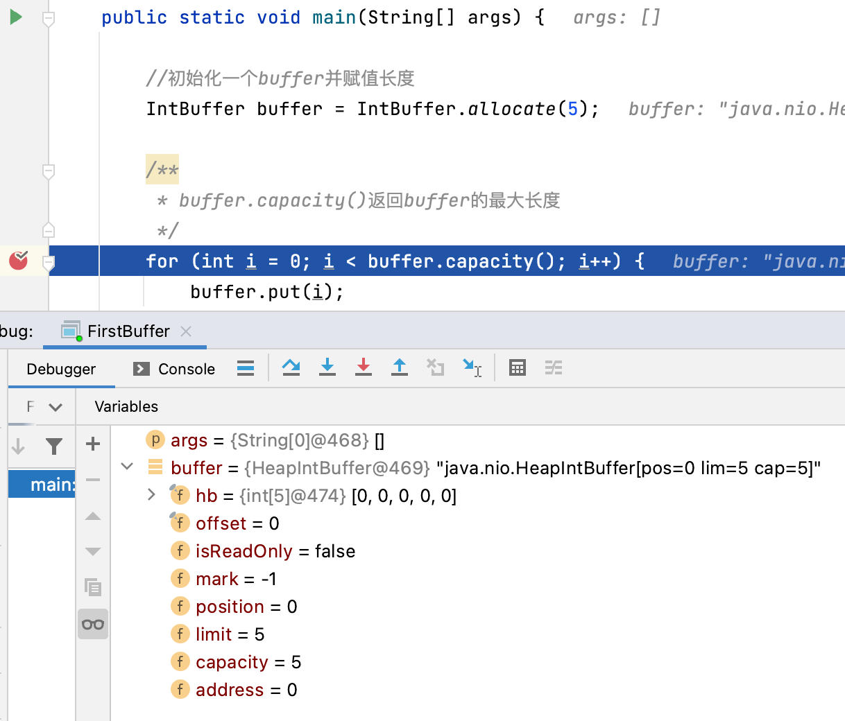 Buffer类定义了所有的缓冲区都具有的四个属性来提供关于其所包含的数据元素的信息: