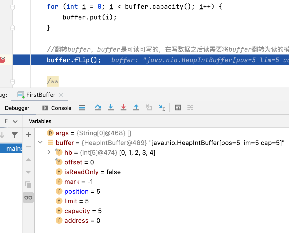 //翻转buffer,buffer是可读可写的,在写数据之后读需要将buffer翻转为读的模式