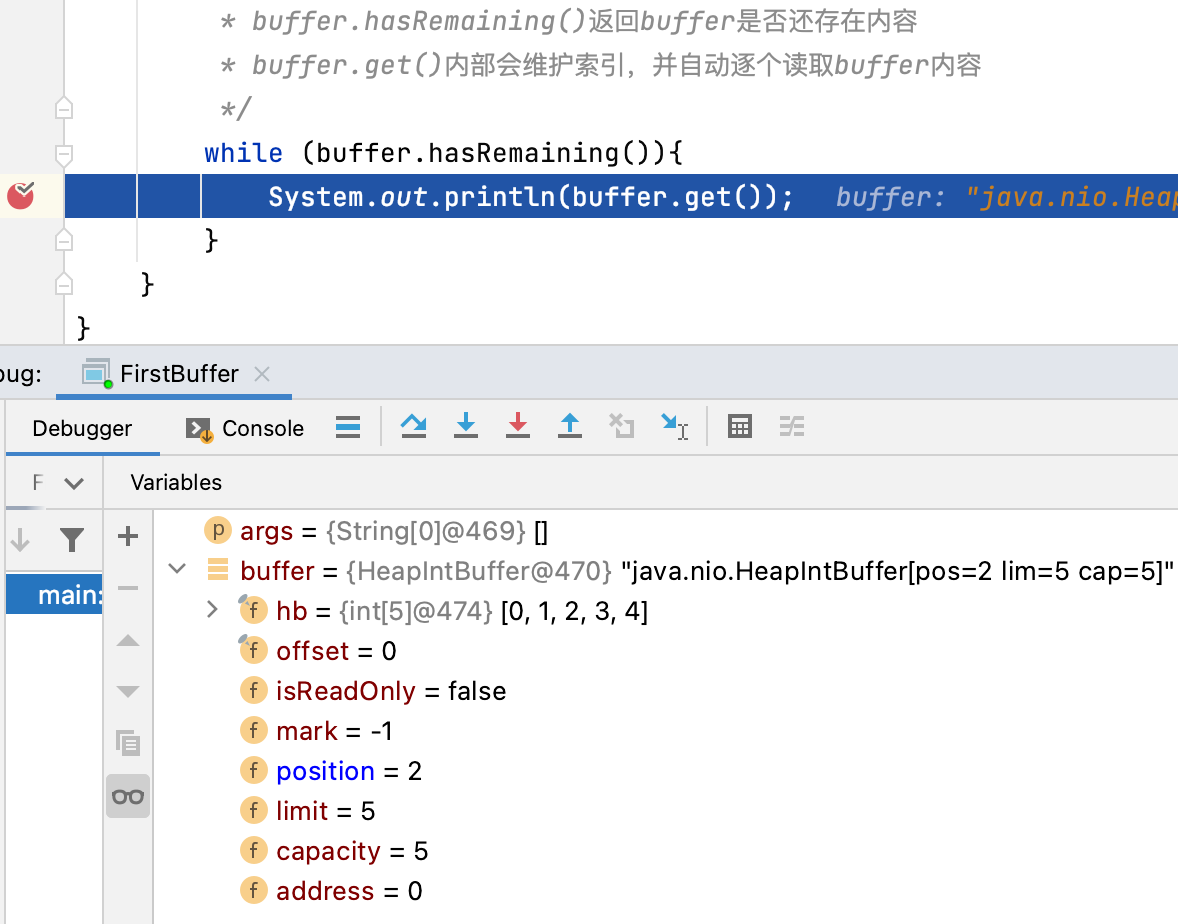 * buffer.get()内部会维护索引,并自动逐个读取buffer内容