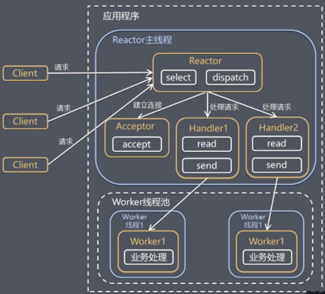 - Java NIO:同步非阻塞,服务器实现模式为一个线程处理多个连接,即客户端发送的请求都会注册到多路复用器上,多路复用器轮询到有I/O请求就进行处理;