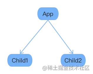 为了探究父子组件以及不同子组件之间生命周期函数的执行顺序,我初始化了三个组件分别是父组件 App、子组件 Child1、子组件 Child2。它们的结构如下: