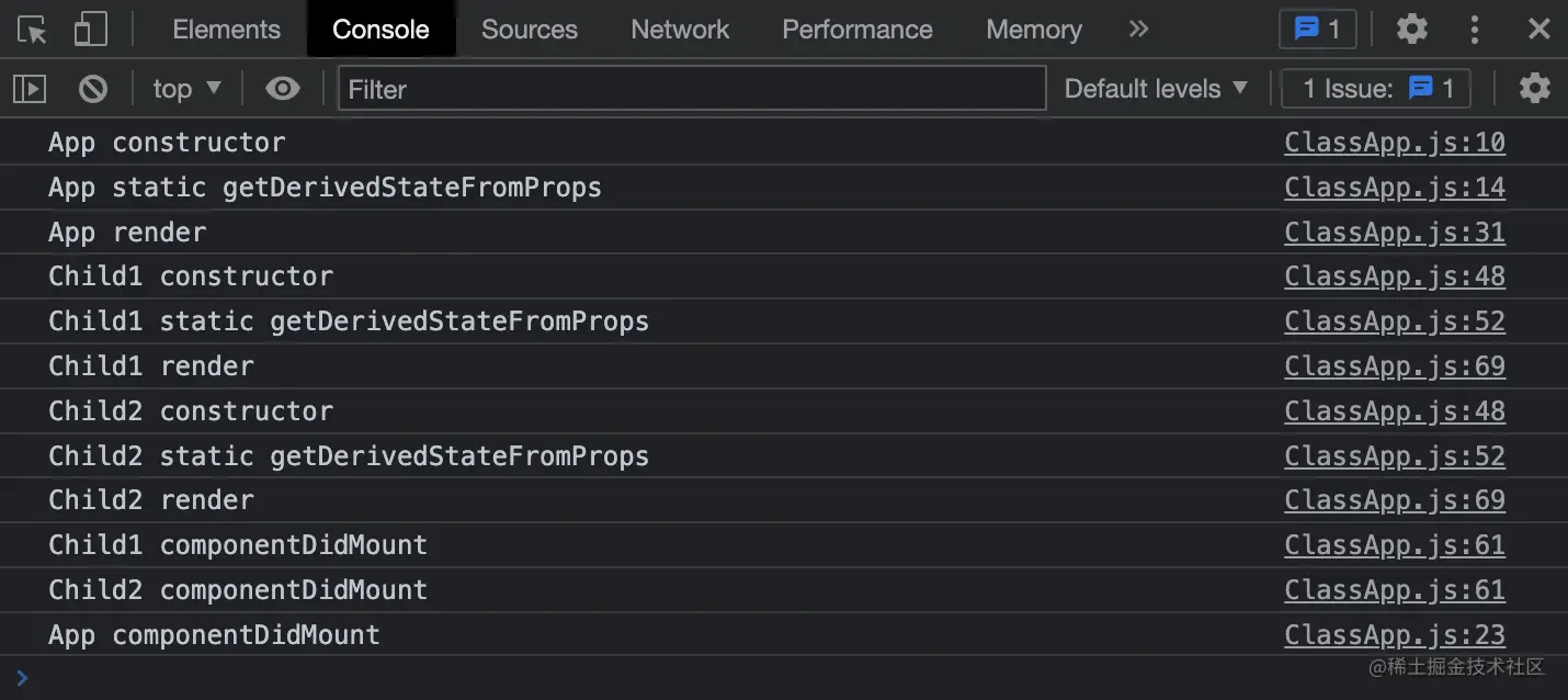 可以看到,在首次渲染时,getDerivedStateFromProps 的执行顺序基本上替代了 componentWillMount 的执行顺序。
