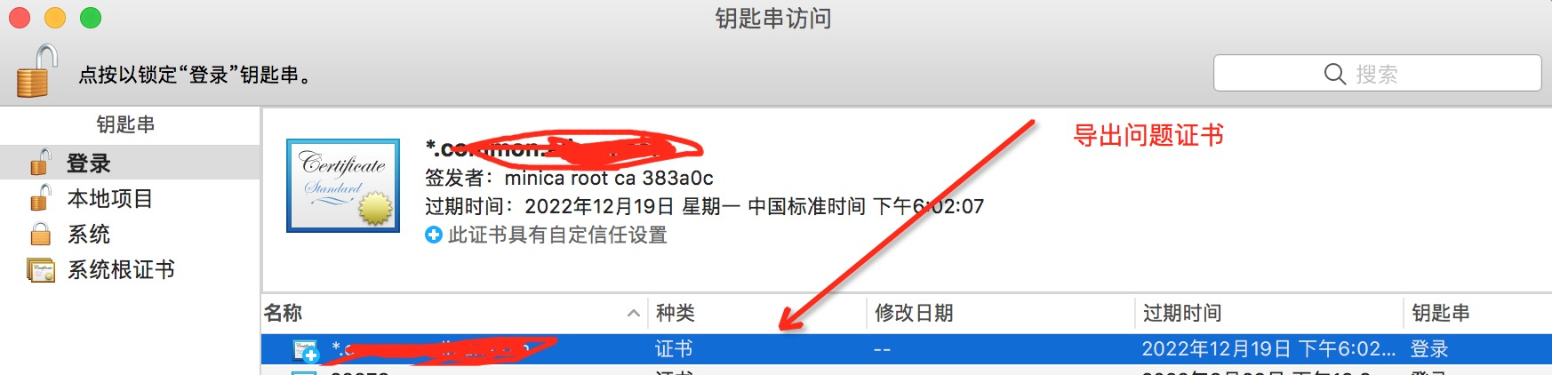 (1)本地浏览器访问对应问题链接(https),添加本地证书后,再导出
