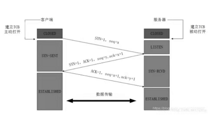 己发送、接收正常,服务器接收、发送正常。ACK=1ack=x+1SYN=1seq=y