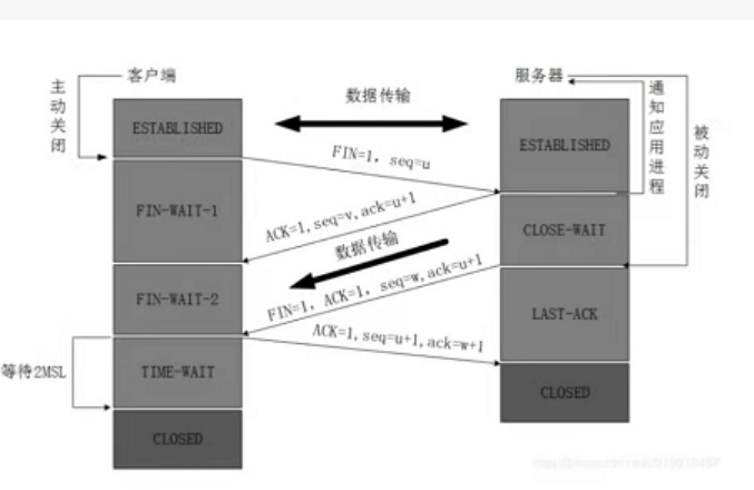 。第三次:服务器请求断开 FINseq=wAKack=u+1