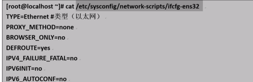 (1)配置文件:/etc/ sysconfig/network-scripts/目录下的ifcfg-对应网络设备名称,默认第一块网卡为ens32或者ens33