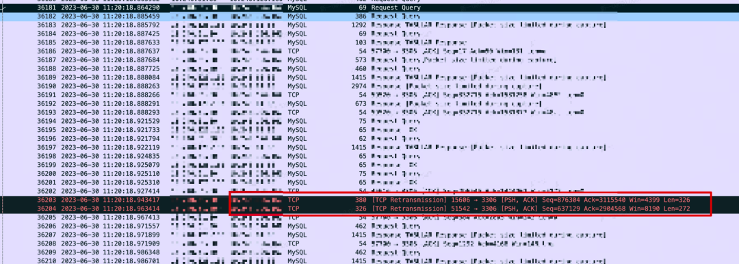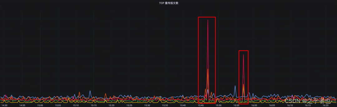 这是最常见的一种情况,一般我们可以通过观测应用所在主机的 TCP 重传监控是否有尖刺,但这里要注意下,TCP 重传不代表一定是网络抖动,也可能是网络带宽打满或者数据库 &DAL 异常。