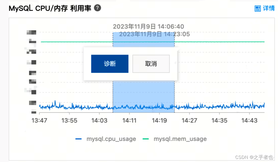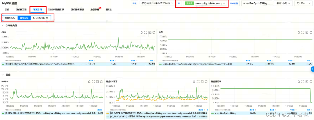 重点观测 CPU内存利用率 & IOPS 使用率,也可以框选指定时间段进行自动诊断。
