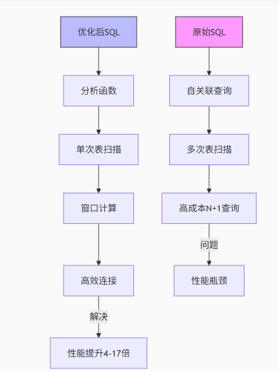 | 测试项 | 原SQL(ms) | 方案1(ms) | 方案2(ms) | 提升 |