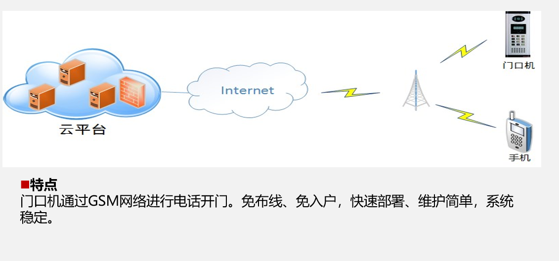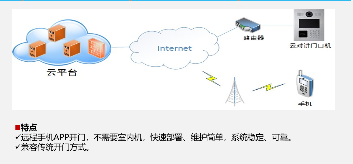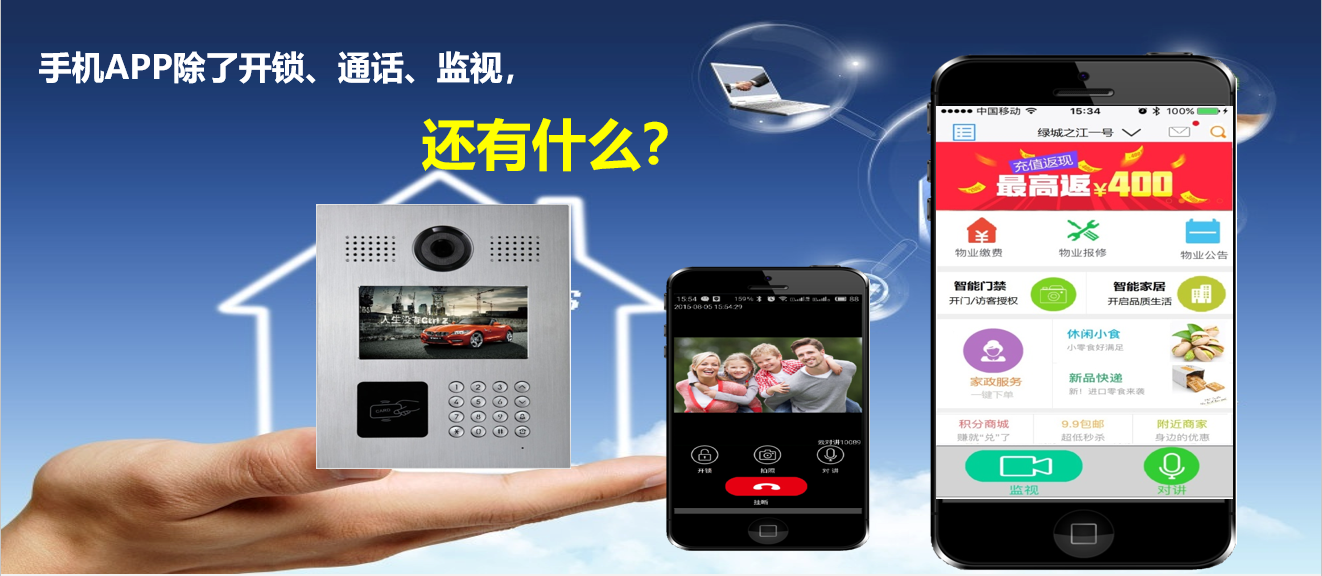 住户不在家也能知道谁来了,APP视频、语音轻松云对讲,服务端实现推送和图像存储,没装APP?手机上网关闭了?自动发起绑定PSTN语音通话,降低重新综合布线的改造难度,接入互联网,一切皆能实现。