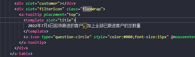 然后通过scopedSlots 配置 filterDropdown是显示功能的slot filterIcon是显示图标 以及tips文本的slot