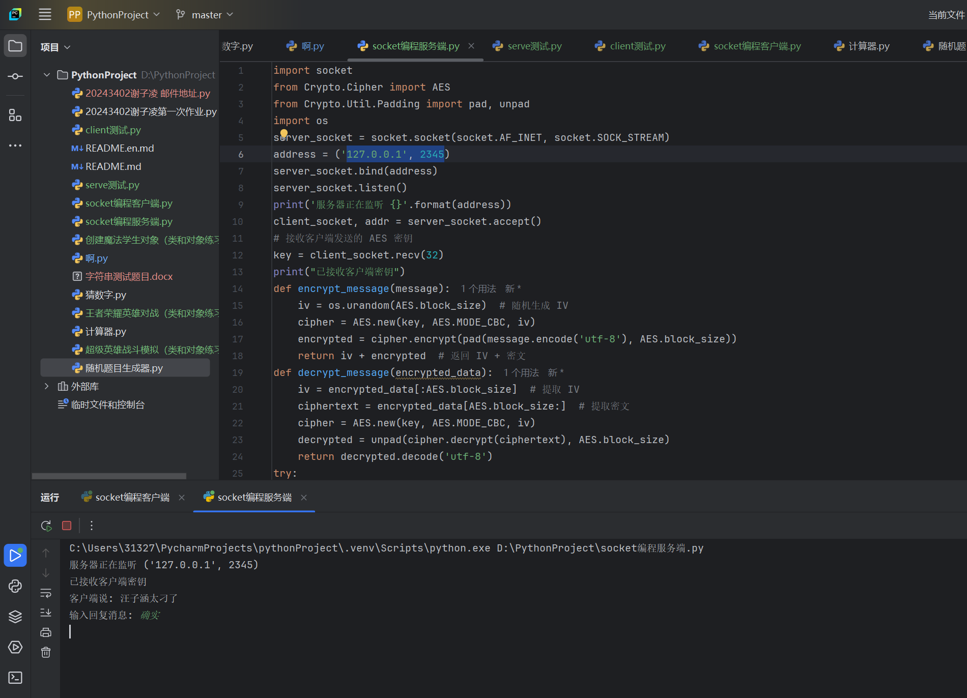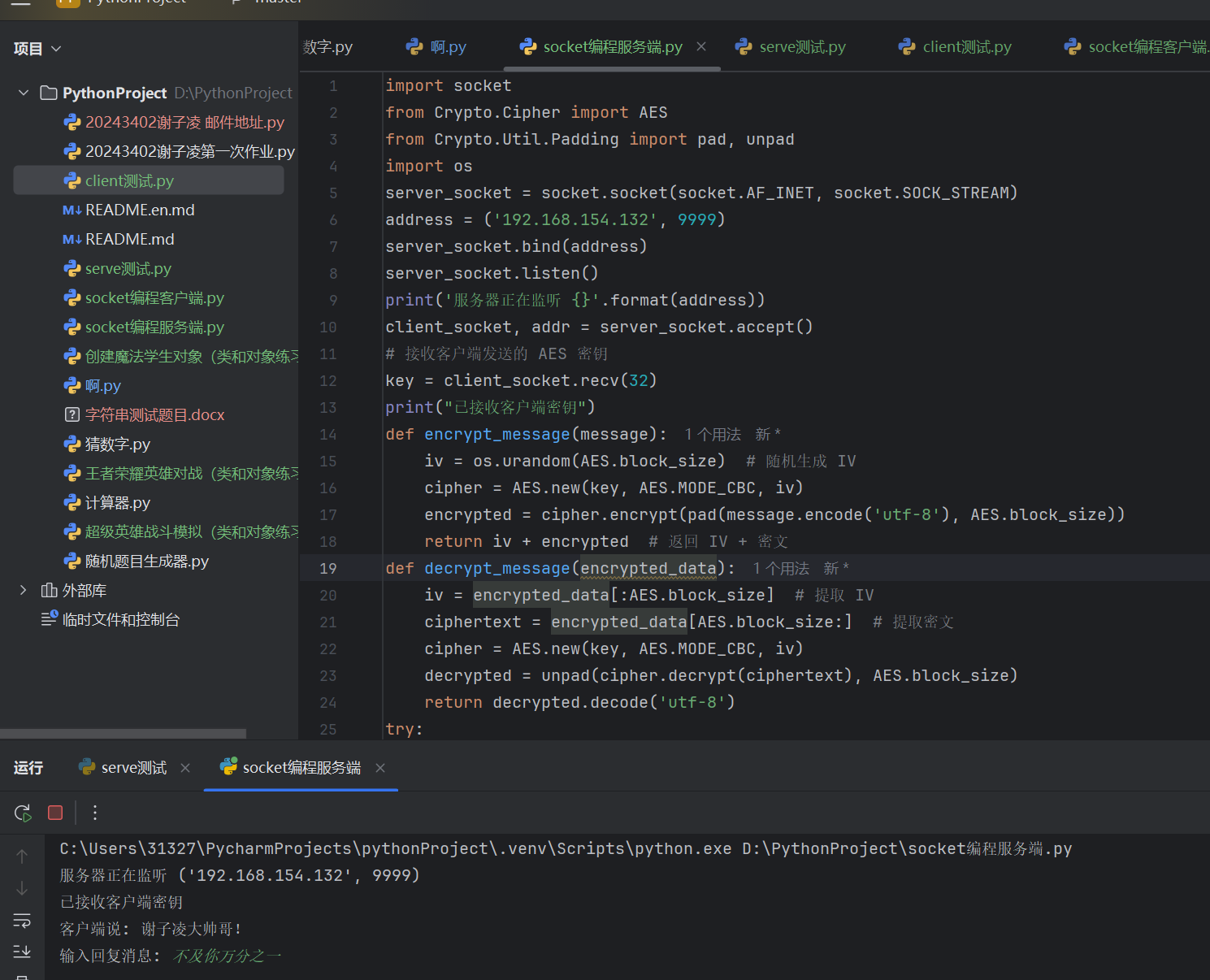 # 接收客户端消息并解密