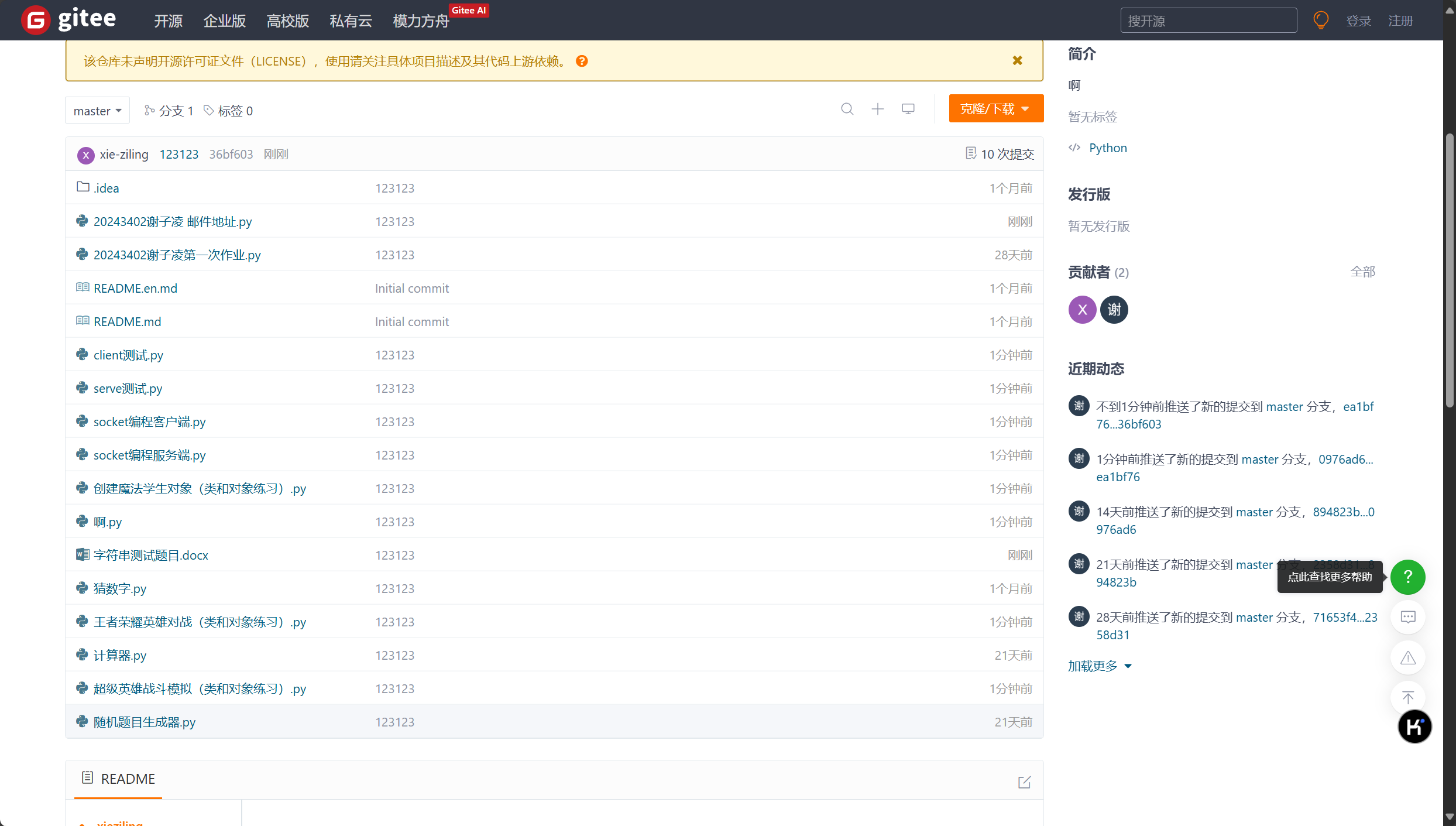 (4)程序代码托管到码云。