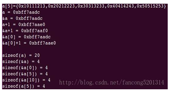 对于a+1和&a+1,a+1则是第二个元素即a[1]的地址,这里的1表示一个数组单元,0xbff7aadc+4=0xbff7aae0;&a+1则是a[4]的下一个地址,此时的1表示的整个数组单元, 0xbff7aadc+4*5=0xbff7aaf0。