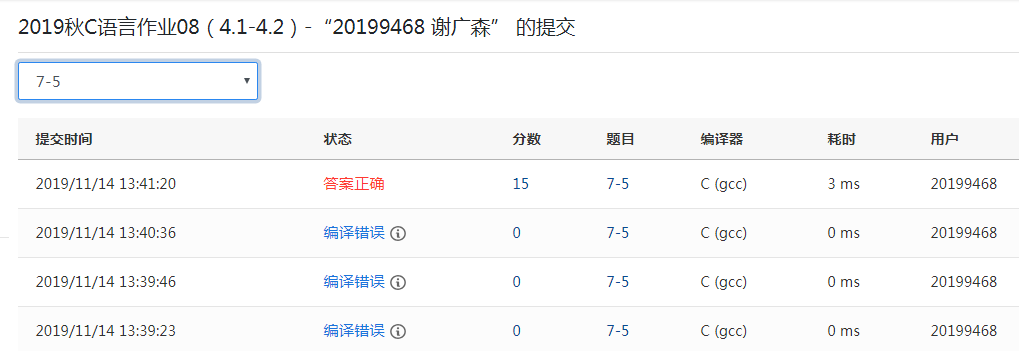 | 这个作业在那个具体方面帮助我实现目标 | 在作业中不断总结错误,更好地掌握了C语言 |