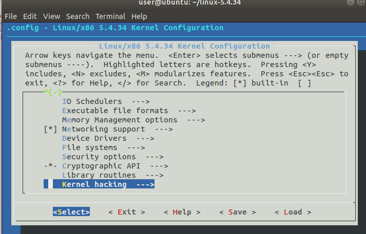 配置内核编译选项,首先打开debug相关选项 ;选择进入Kernel Hacking