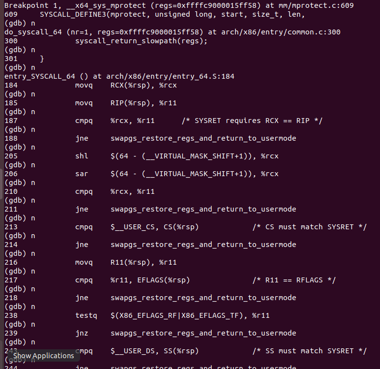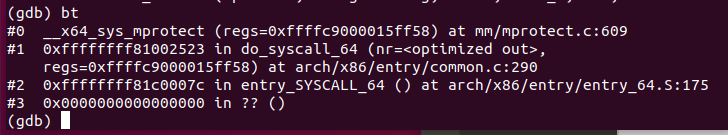 可知第10号调用为mprotect ,对应的处理函数为__x64_sys_mprotect。