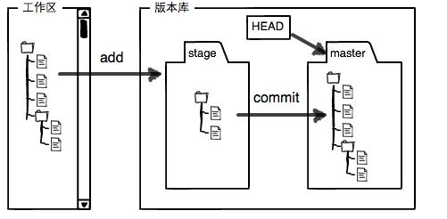 工作区中的一个隐藏目录(.git),是Git 的版本库,其中存了很多东西,最为重要的是:stage (或 index)的暂存区,还有Git 自动创建的第一个分支:master, 以及指向master 的一个指针:HEAD