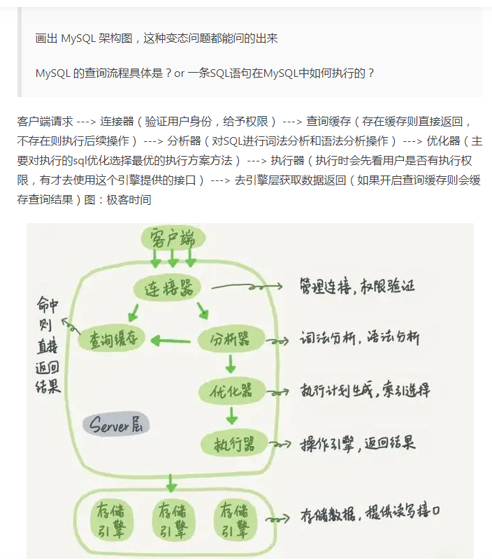再说一下不同引擎的优化,myisam读的效果好,写的效率差,这和它数据存储格式,索引的指针和锁的策略有关的,它的数据是顺序存储的(innodb数据存储方式是聚簇索引),他的索引btree上的节点是一个指向数据物理位置的指针,所以查找起来很快,(innodb索引节点存的则是数据的主键,所以需要根据主键二次查找);myisam锁是表锁,只有读读之间是并发的,写写之间和读写之间(读和插入之间是可以并发的,去设置concurrent_insert参数,定期执行表优化操作,更新操作就没有办法了)是串行的,所以写起来慢,并且默认的写优先级比读优先级高,高到写操作来了后,可以马上插入到读操作前面去,如果批量写,会导致读请求饿死,所以要设置读写优先级或设置多少写操作后执行读操作的策略;myisam不要使用查询时间太长的sql,如果策略使用不当,也会导致写饿死,所以尽量去拆分查询效率低的sql,