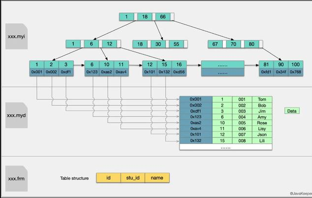 - .MYI (MYIndex)文件:MyISAM 存储引擎专用,用于存储MyISAM 表的索引相关信息