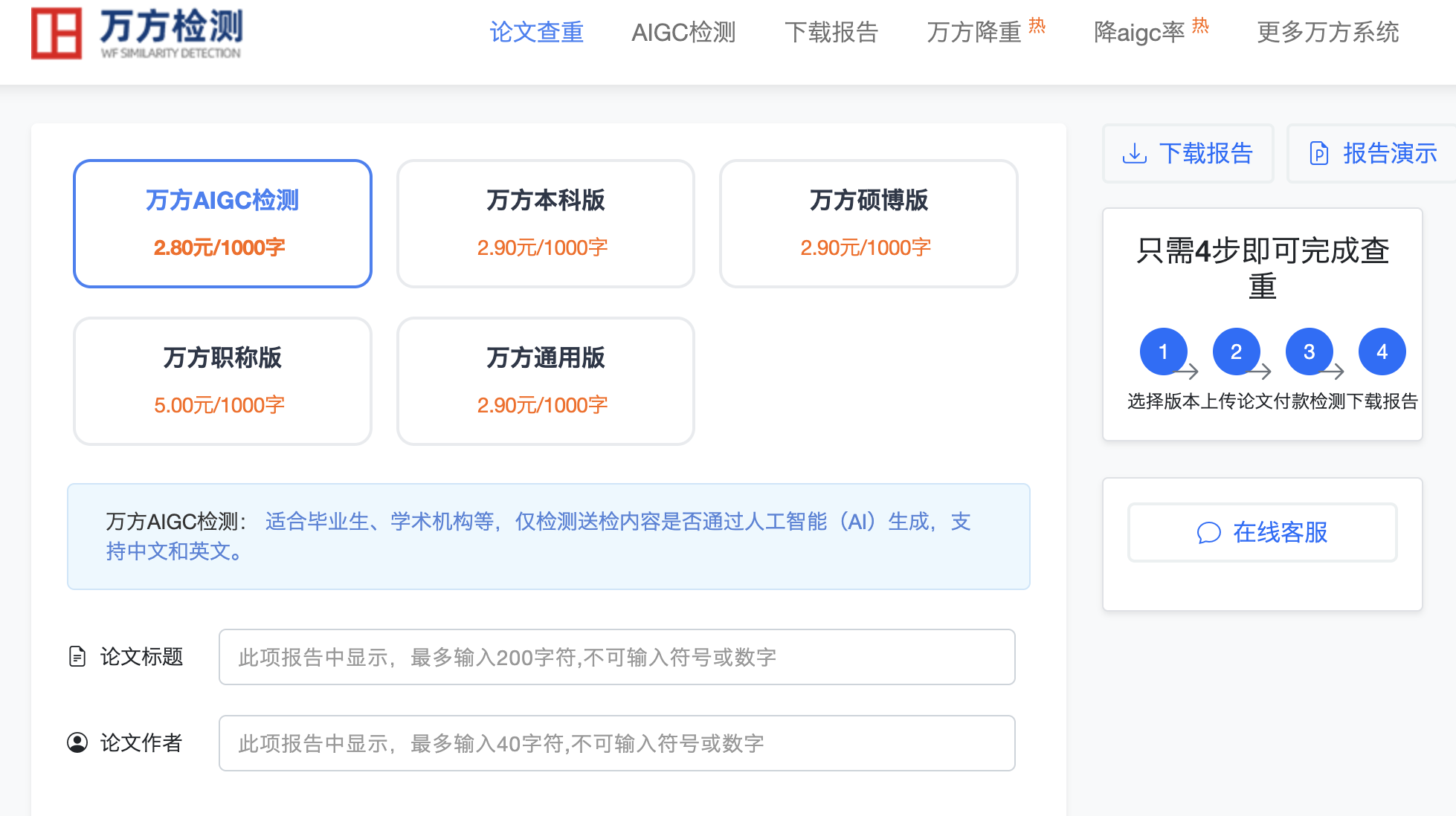 特点: 价格低,28元可查4万字,出报告极快。