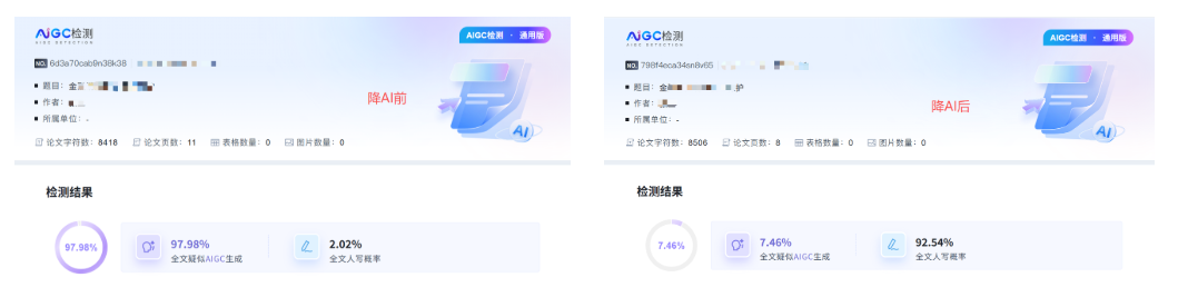 真实体验:我测试了一段法学论文,效果还行,确实把明显的AI味去掉了。但它改后的字数可能会增多,它每天有10次免费的AIGC率检测,这个羊毛可以薅。