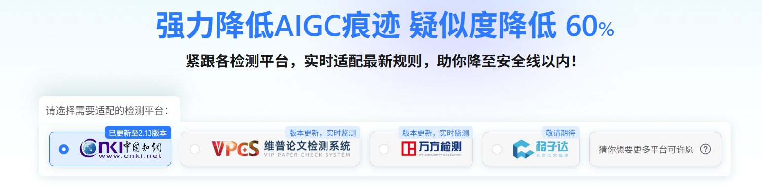 而且它适配知网、维普、万方三大平台算法实时更新,基本一次就能降到安全线以内。