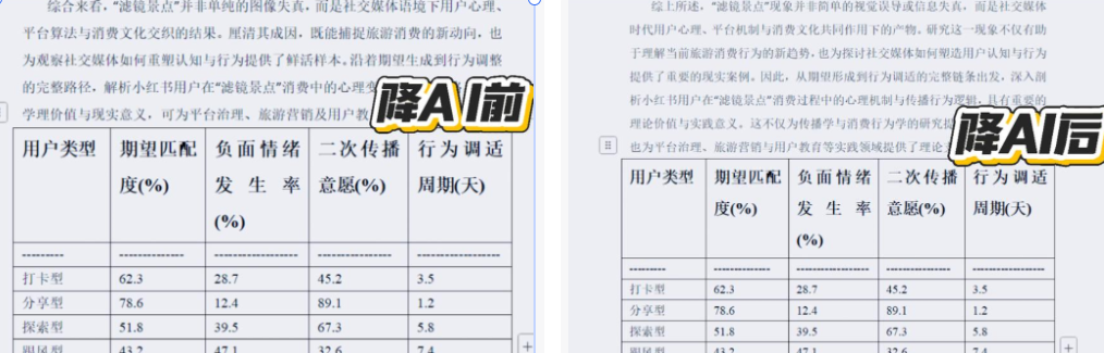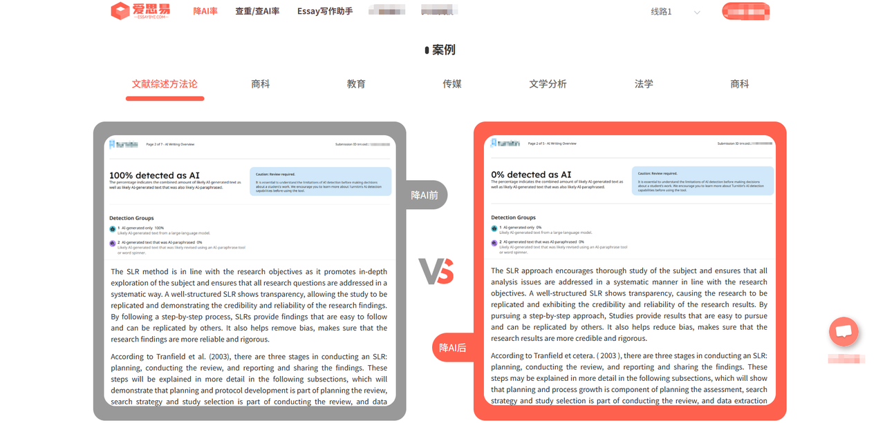 功能亮点: 能够同时进行降ai和查重率双降,特别针对管理、文学等文科类论文进行了优化,语义保留较好。
