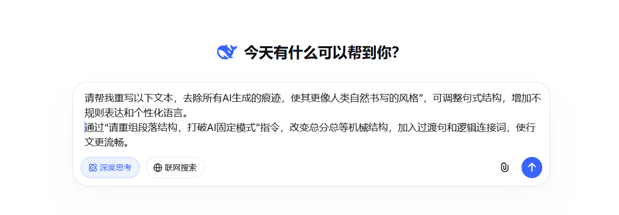 功能亮点:免费通用大模型,擅长深度逻辑推理。想用它降ai率,得靠构建复杂的提示词,让它模仿人类语癖去重构文章,避免生成“正确的废话” 。