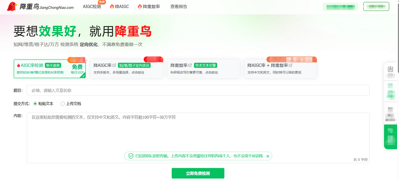 使用体验:我拿它测了一篇管理学论文,对于理论阐述部分的改写非常自然,逻辑也没断层 。但后来试了一篇带复杂公式的工科文章,改完公式有点乱码。如果你是纯文字较多的学科,用它aigc免费降重体验很不错。