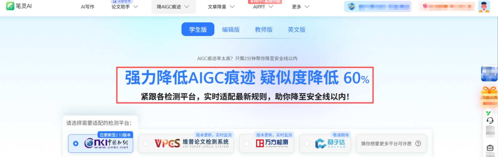注意事项:它是付费的,3元/千字,也不要把它当成降重工具,它是专门降低ai的。