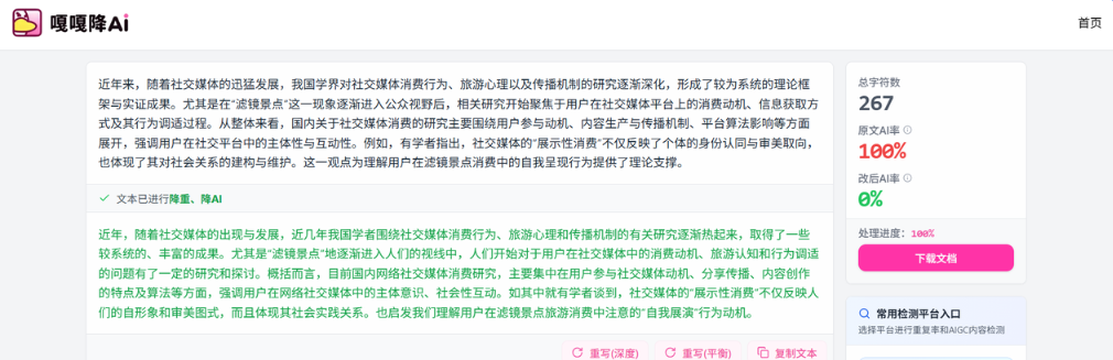 我再唠叨两句,所有降ai率工具都是辅助,改完后必须自己再通读一遍,确保核心观点和实验数据准确无误。工具改完后,建议使用学校指定的查重系统做最后一次检测,确保万无一失。