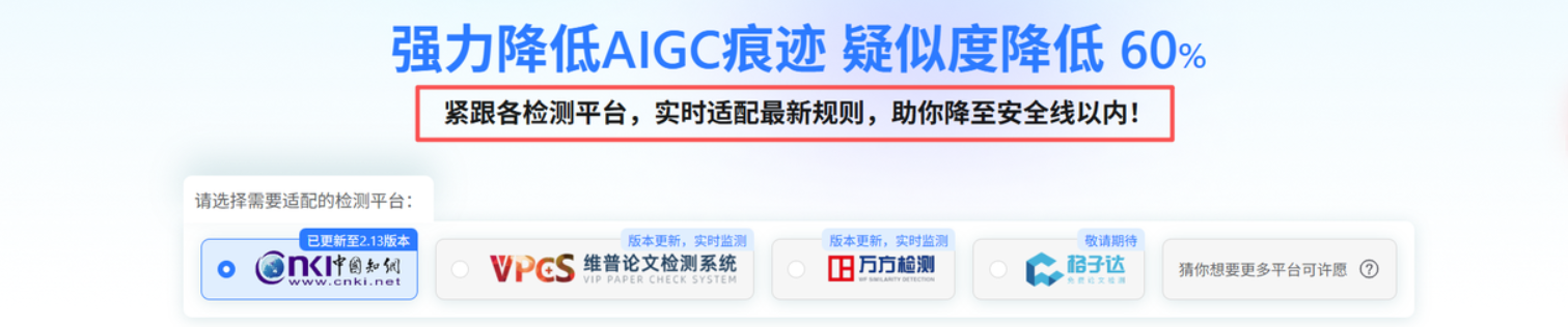 算法适配:针对新版知网和维普的AI检测算法进行了适配。