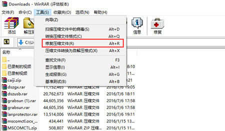打开 WinRAR 软件,选择需要修复的软件,然后点击【工具】→【修复压缩文件】。
