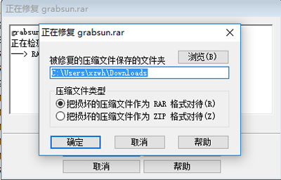 在弹出【正在修复】窗口中,单击【浏览】按钮,设置修复好文件的存放路径,然后在【压缩文件类型】中选择一种修复后的文件格式,设置好之后点击确定按钮,这样WinRAR软件就会开始对受损的压缩文件进行修复。