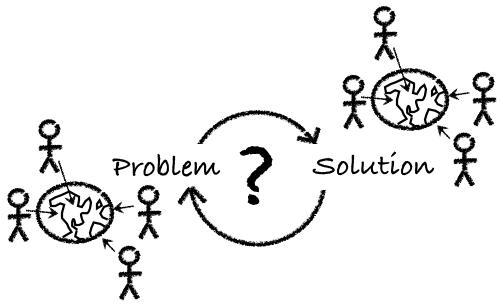 不过这个视图过于简化。从问题得出解决方案,我们不应该把这个过程看成是信息的单向流动,也绝不能把它看成是一次性、瀑布式的过程。这种做法我们先前都见过,它的进展并不顺利。