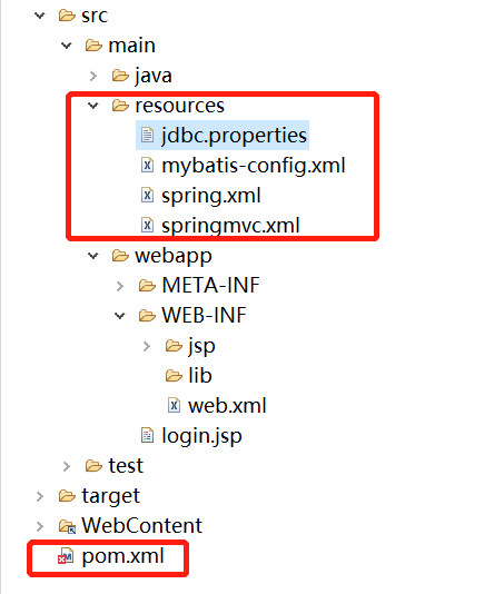 5.pom.xml、web.xml、springmvc.xml、spring.xml、mybatis-config.xml、jdbc.properties文件的创建.