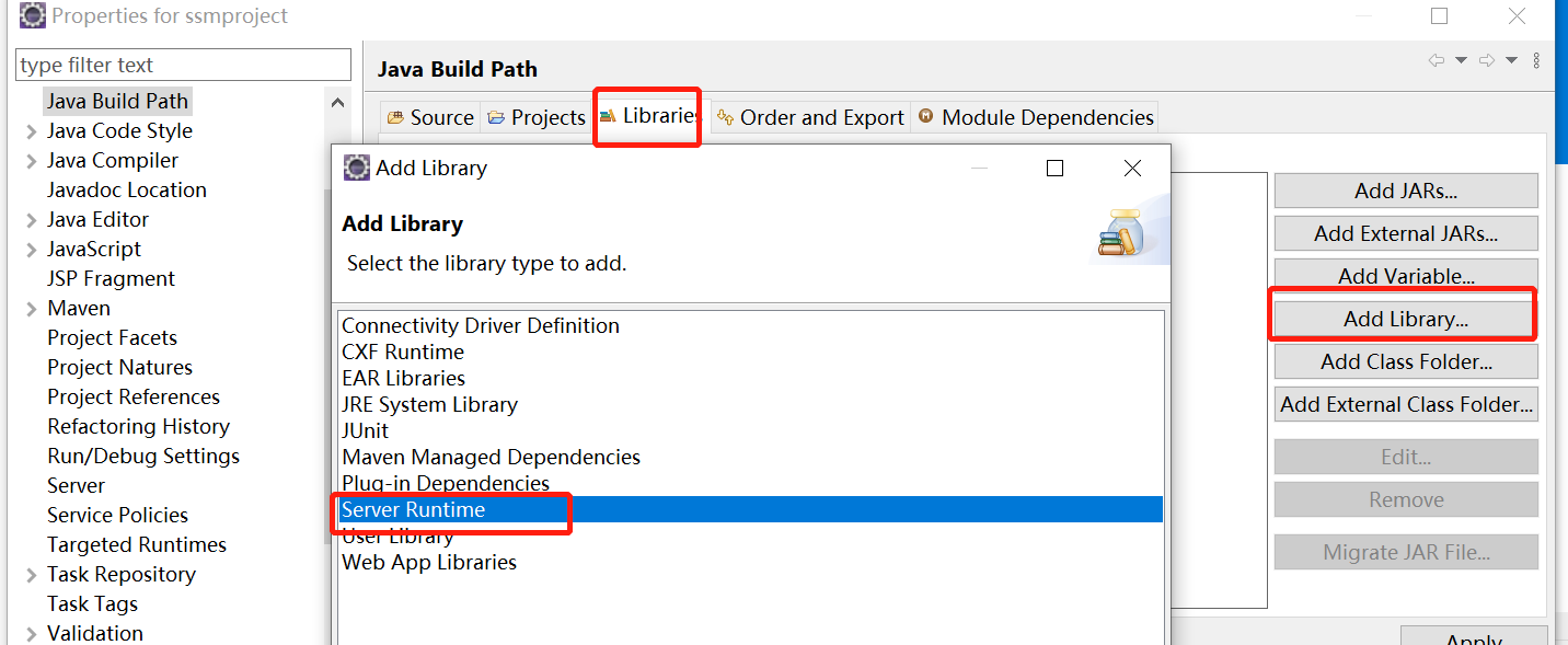 项目添加BuildPath,增加Server Runtime,选中新建的Tomcat9 Server完成。