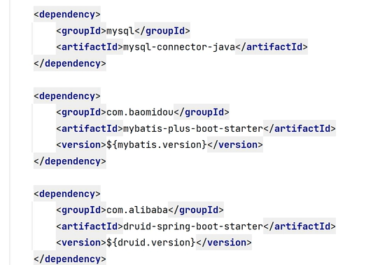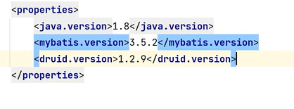 3.添加mysql驱动、mybatis、数据库连接池,定义版本,刷新maven