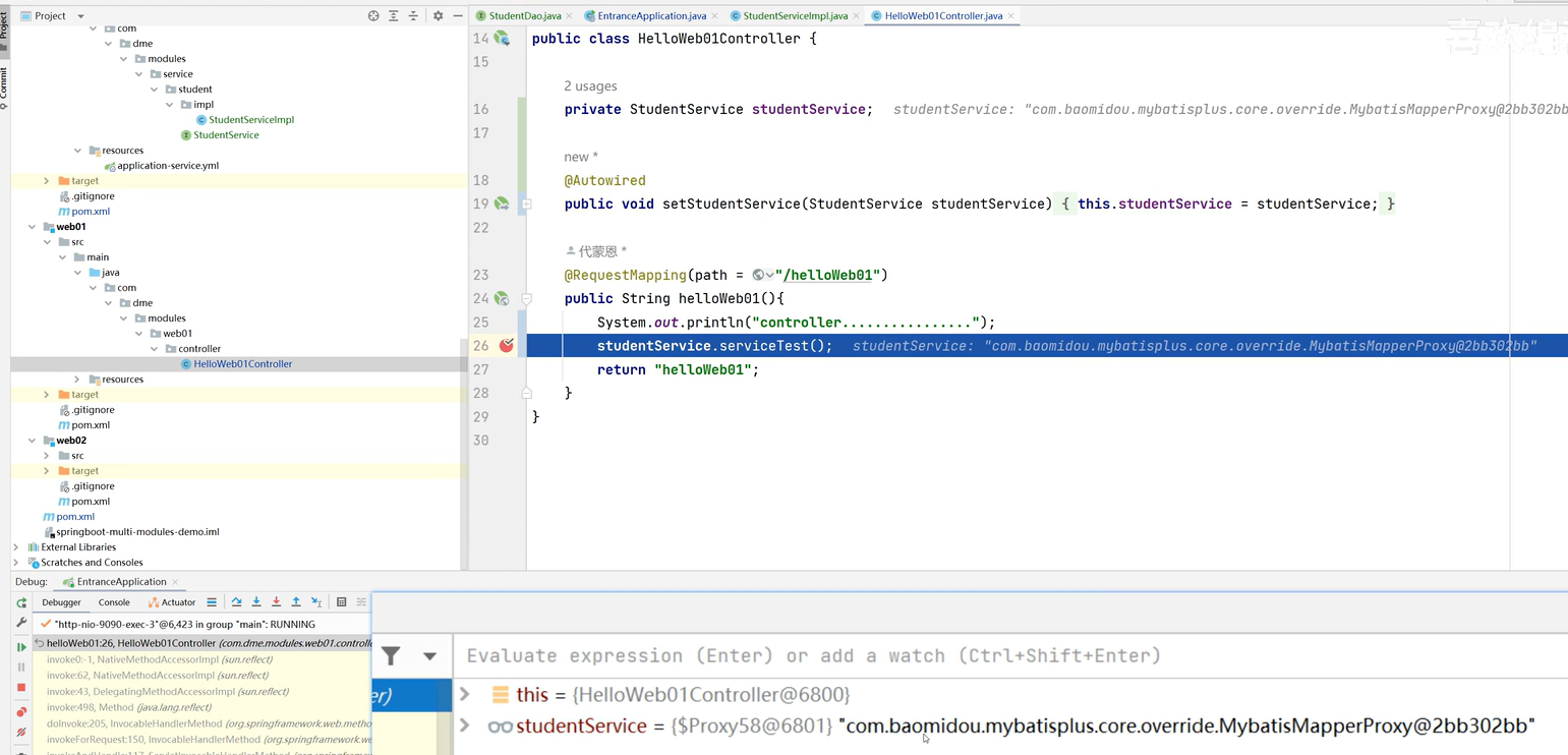 7.service模块创建接口和实现类,controller调用service,访问测试