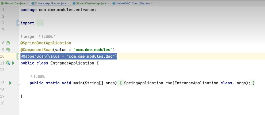 10.修改启动类,增加MapperScan