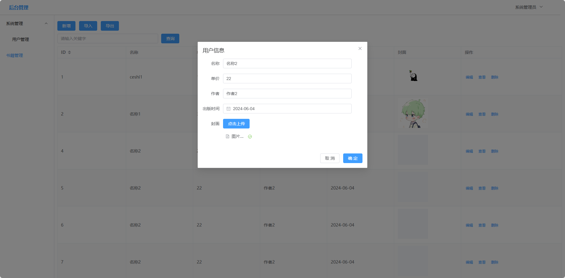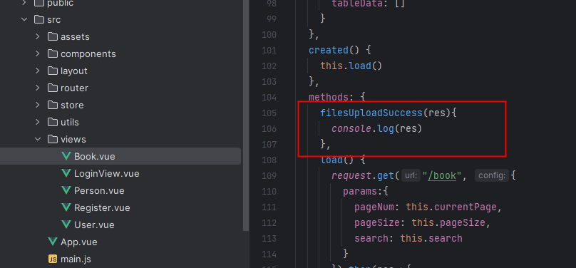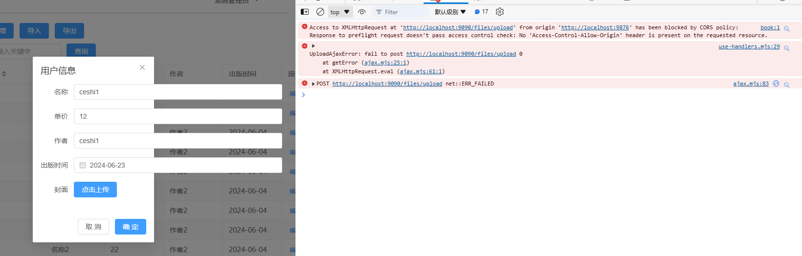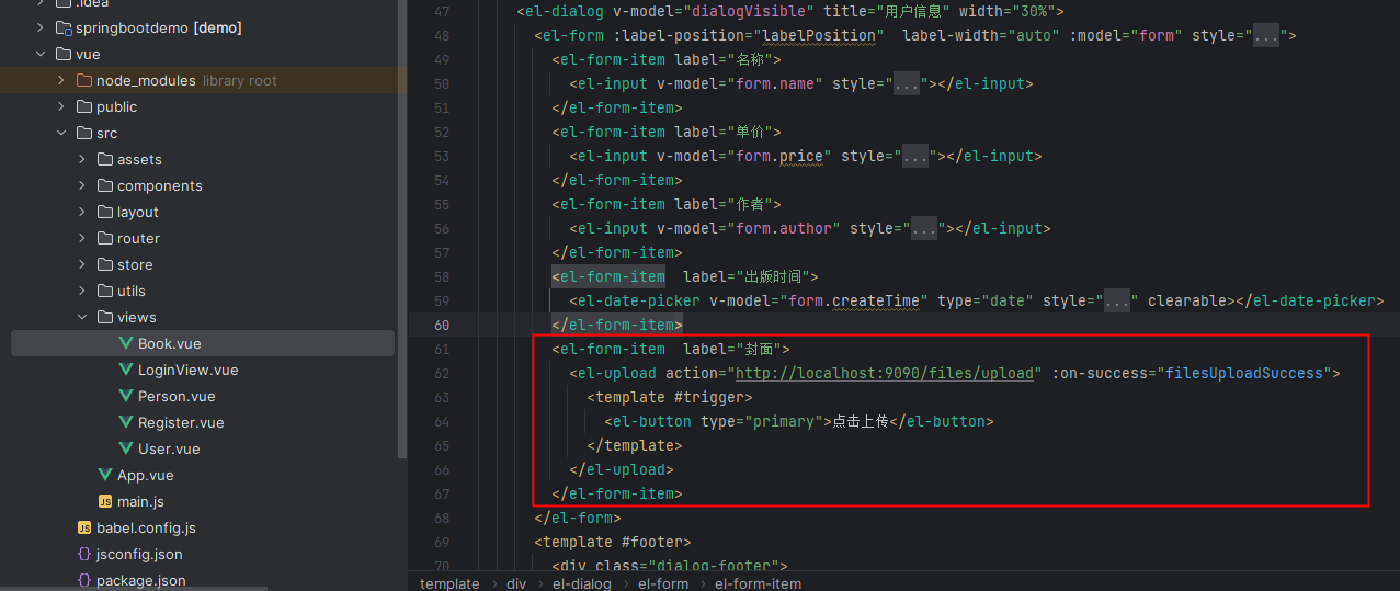 2.vue/src/views/Book.vue里增加文件上传,测试,报错