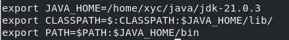 export JAVA_HOME=/home/xyc/java/jdk-21.0.3