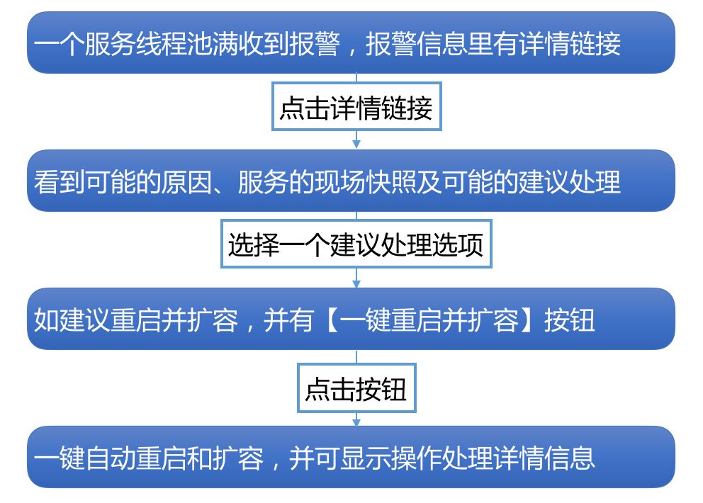 美团点评内部可以使用的用于发现、定位、处理的系统和平台非常多,但是如果一个个打开链接或者登陆系统,势必影响解决速度。所以我们要做集成,让问题一站式解决。希望达到的效果举例如下: