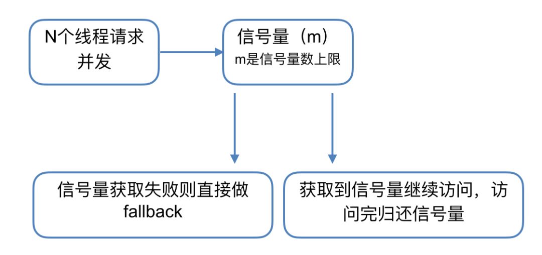 信号量隔离也可以用于限制并发访问,防止阻塞扩散,与线程隔离的最大不同在于执行依赖代码的线程依然是请求线程。