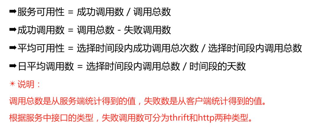 因为业界的标准是后验的指标,考虑到对于平时工作的指导意义,我们通常采用服务治理平台OCTO来统计可用性。计算方法是:
